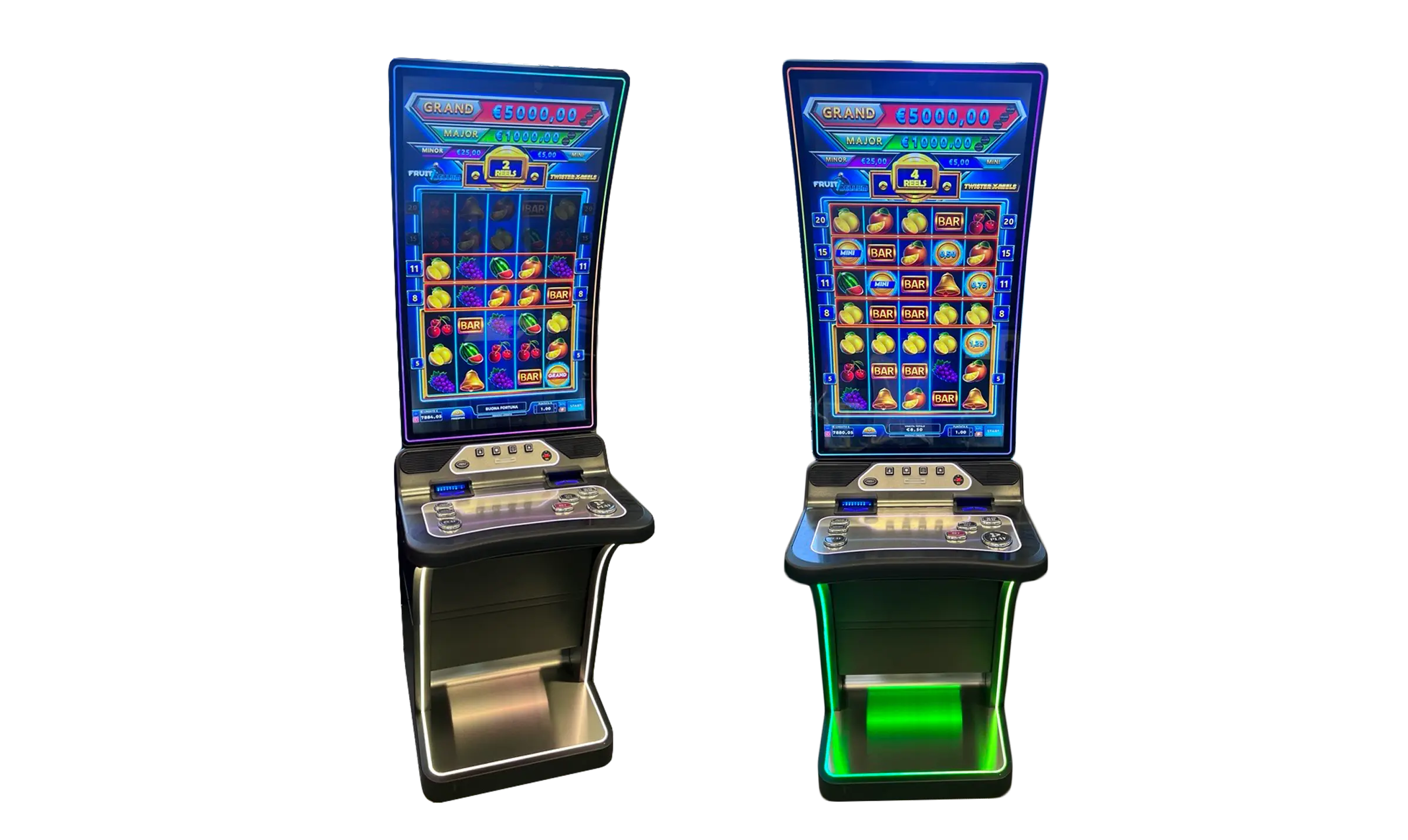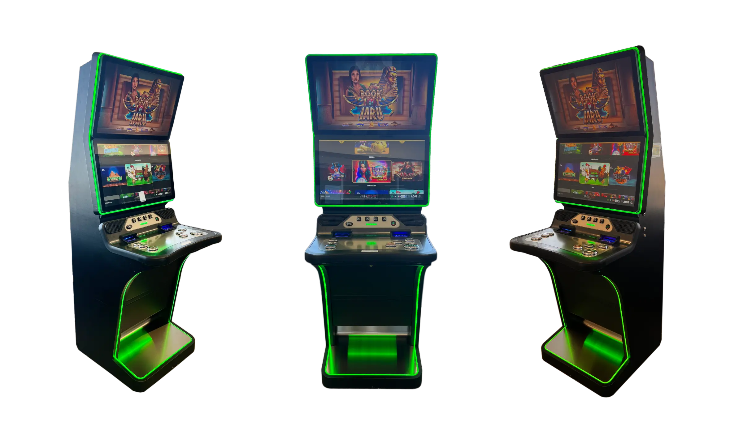 È dotato di due grandi monitor ad altissima definizione e luminosità, di cui uno touchscreen, che garantiscono un’eccezionale qualità visiva e un’esperienza di gioco immersiva.